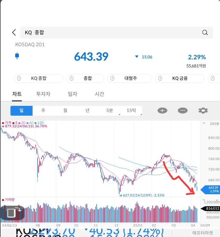 1. 시장 하락 추세 : 미국의 트럼트 관세 관련 영향으로 아직까지도 시장은 완전한 반등을 하지 않고 있다.